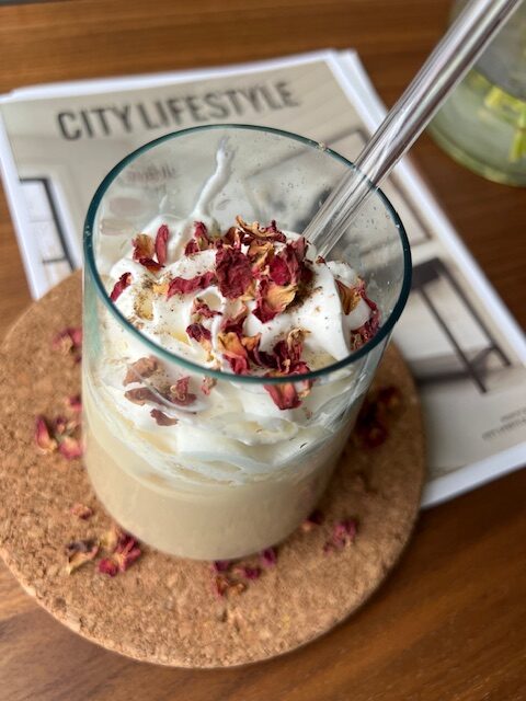 - Top it off: Add whipped cream on top (optional), and finish with a sprinkle of dried rose petals.